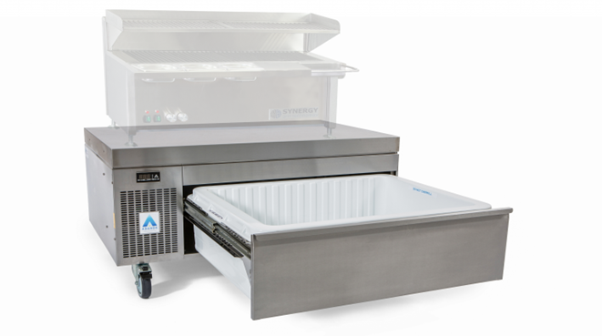 Doar recipientul rigid, izolat termic, este răcit în interiorul dulapului, iar atunci când sertarul este deschis, acesta „păstrează frigul” în interior. Acest lucru economisește o cantitate semnificativă de energie comparativ cu sertarele frigorifice tradiționale.