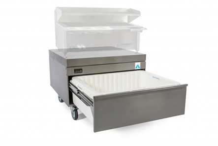 Doar recipientul rigid, izolat termic, este răcit în interiorul dulapului, iar atunci când sertarul este deschis, acesta „păstrează frigul” în interior. Acest lucru economisește o cantitate semnificativă de energie comparativ cu sertarele frigorifice tradiționale.